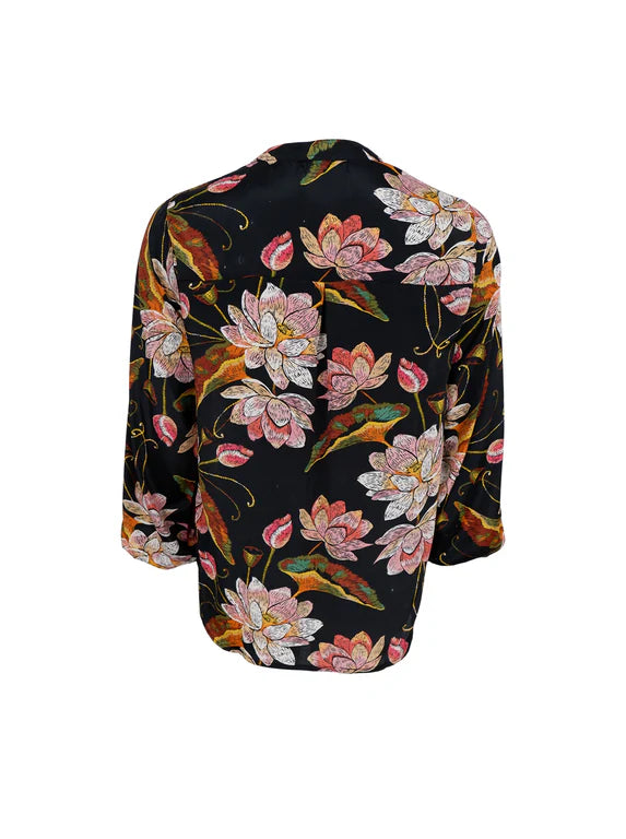 Feminin och unik blus med v-ringning och resår vid ärmar.