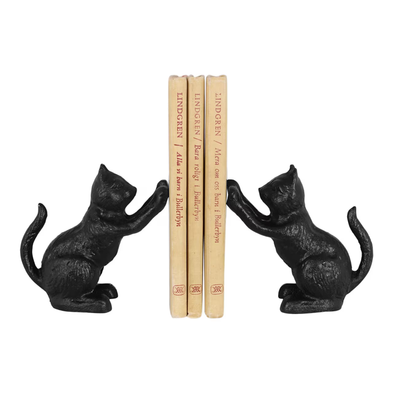 Vackert bokstöd med katter, tillverkat i gjutjärn/smide.