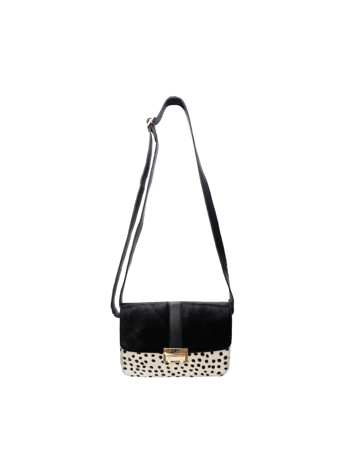 Crossover-väska i Hairon-läder, kombinerat med olika tryck. Levereras med justerbar rem.