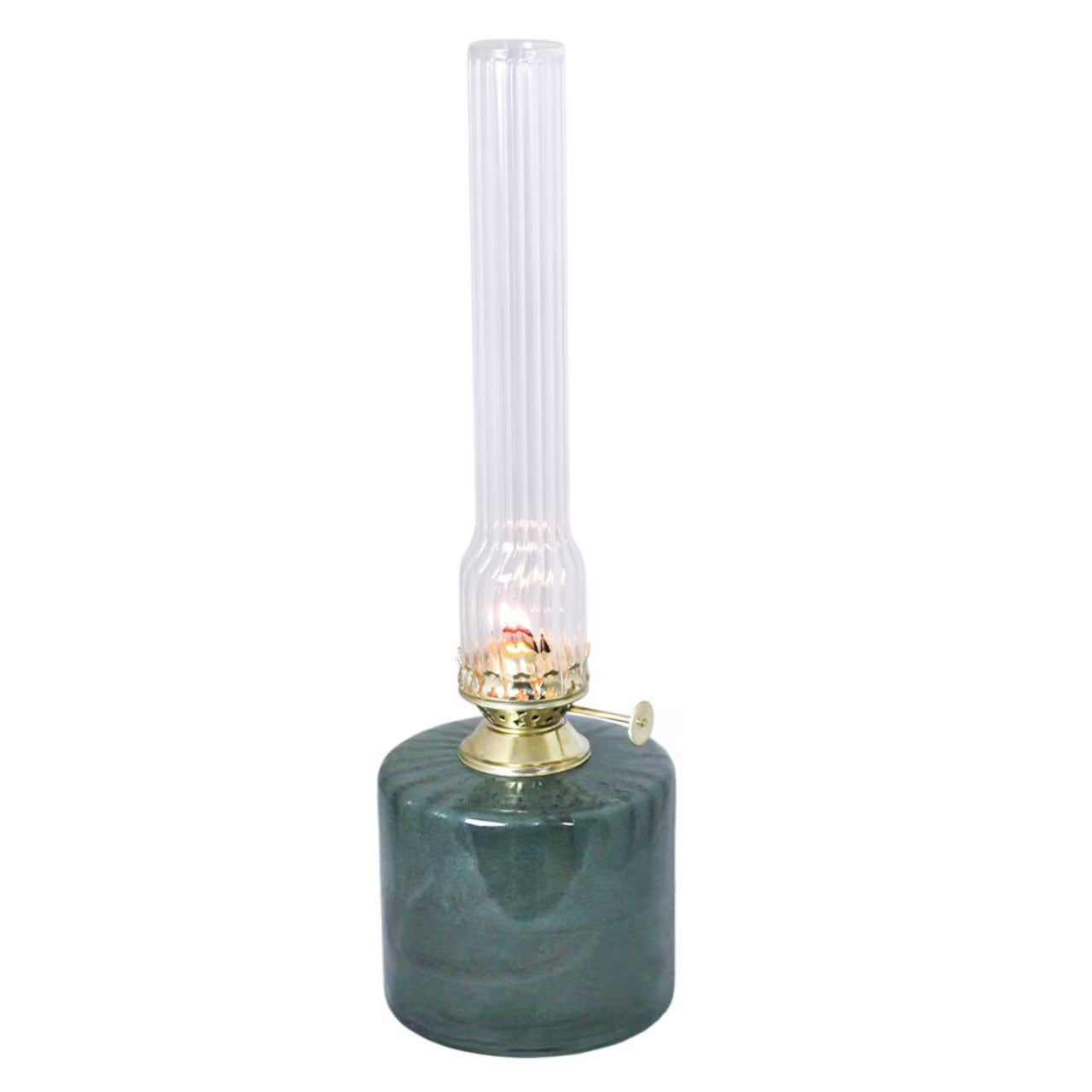 Elegant fotogenlampa i vackert grönt räfflat glas och mässingsbrännare, inklusive en veke. Lampan är tillverkad av 50-60% återvunnet glas och passar med veke artikelnummer 116210 samt brännarerör med artikelnummer 139420G eller 121810G. Använd gärna tillsammans med Strömshagas lampolja (artikelnummer 100001), säljs separat.