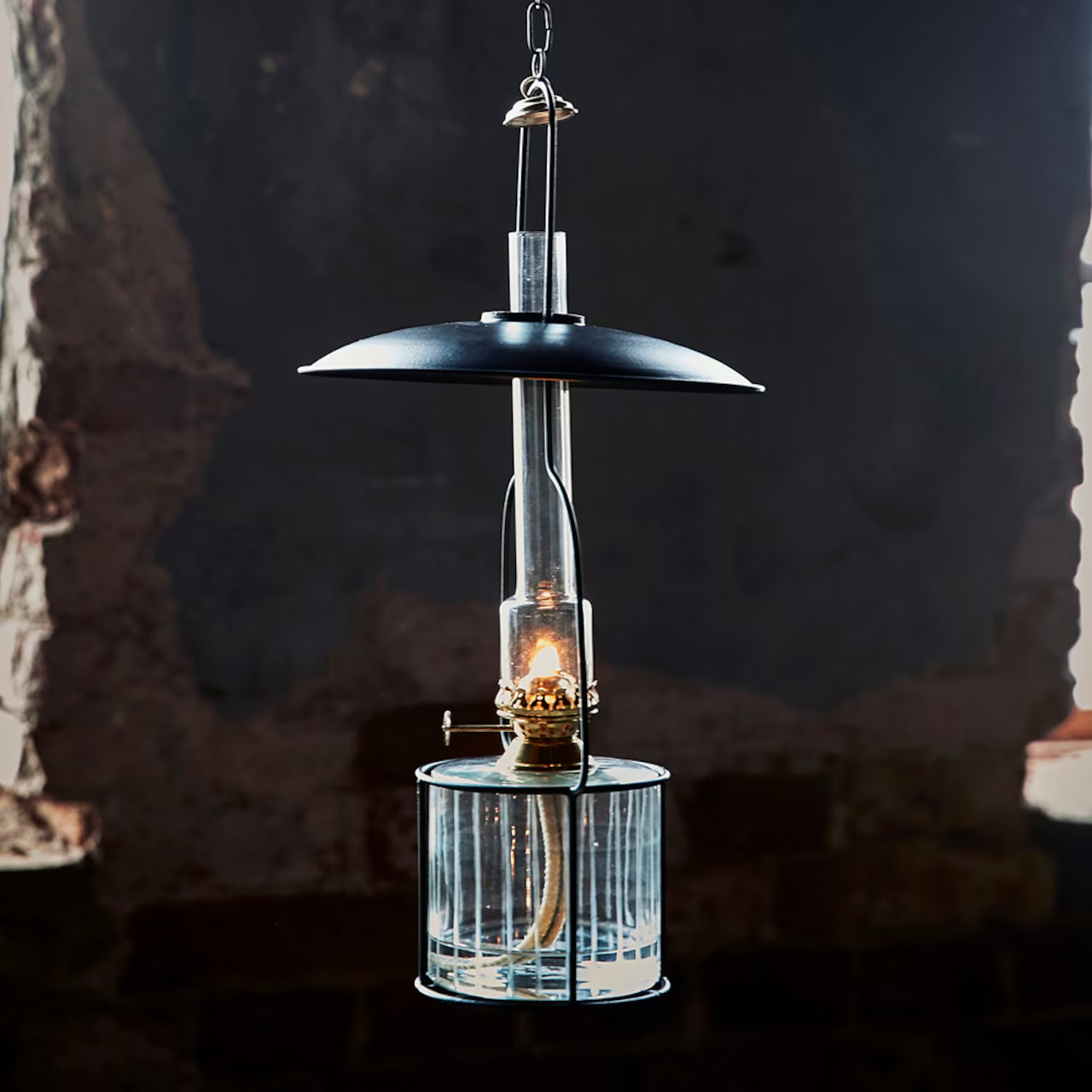 Komplett artikel med Fotogenlampa Rak Stor (artikelnummer 121810) och Hängande Ställning Svart (artikelnummer 713207).