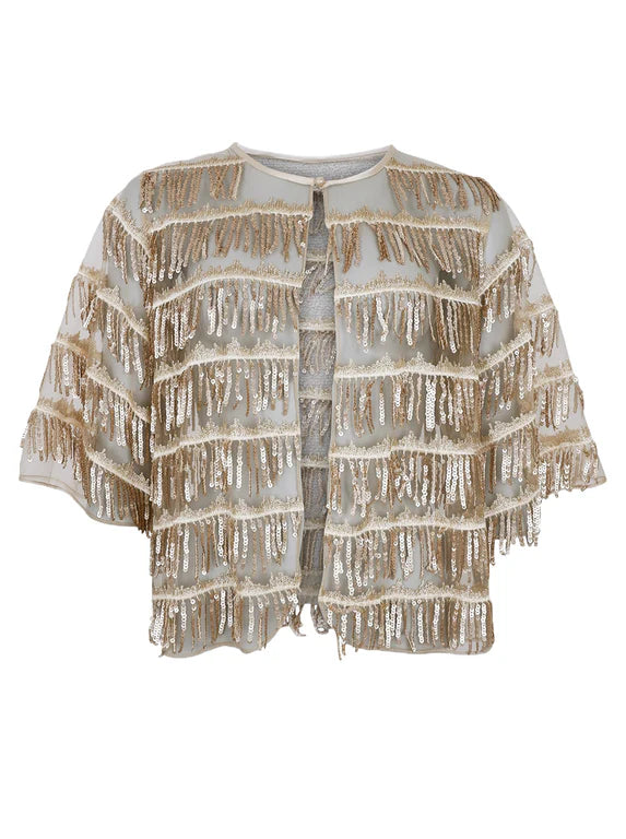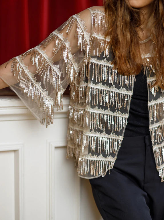 Transparent meshtyg med rep av paljettstappar.
