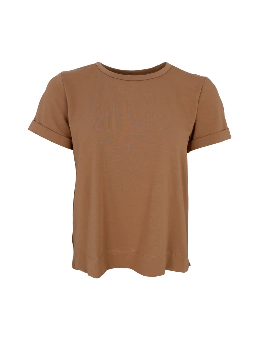 Kortärmad t-shirt med o-ringning och uppvikning vid ärmen.