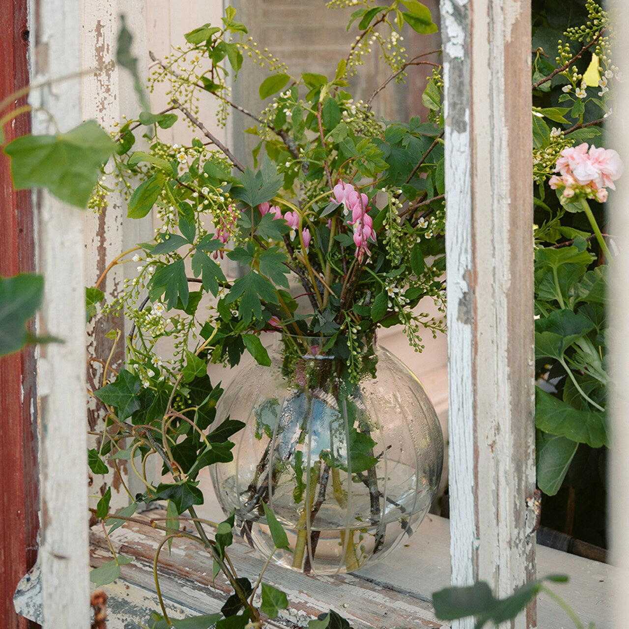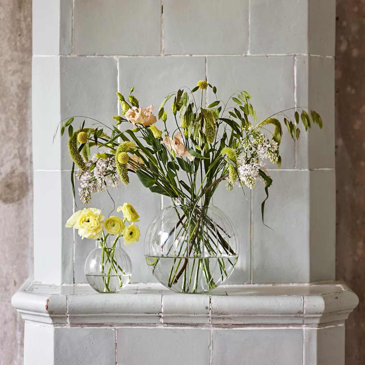 Stor, elegant vas i klarglas med etsade ränder. Vasen är tillverkad av 50-60% återvunnet glas.